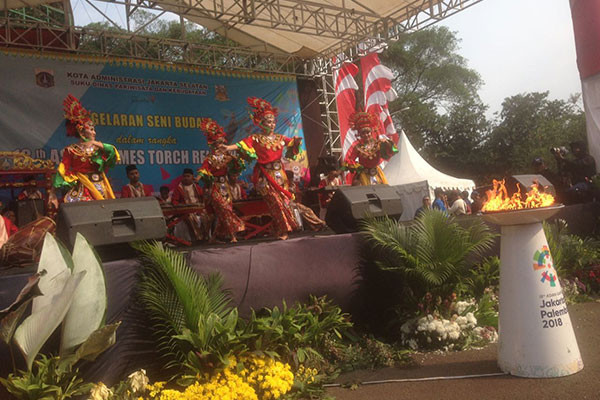 Setibanya di Ragunan, pembawa obor dan rombongannya disambut oleh atraksi silat Betawi yang diperagakan oleh perguruan Justika Citbitik, Beksi Merah, Cingkrik, dan Gerak Rasa Sanalika.