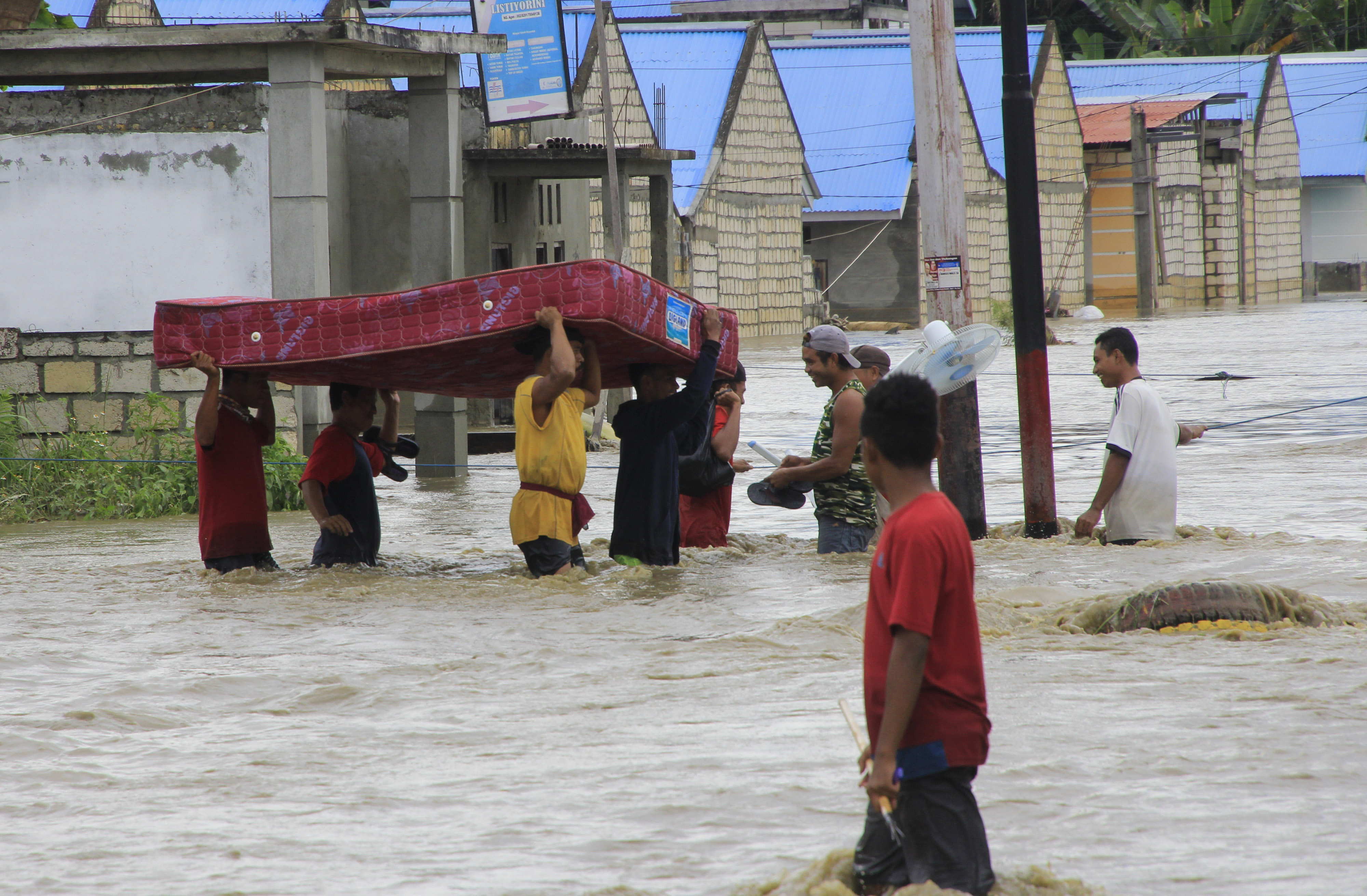 Pemadaman listrik dilakukan karena banyak tiang mengalami roboh dan hanyut terbawa arus