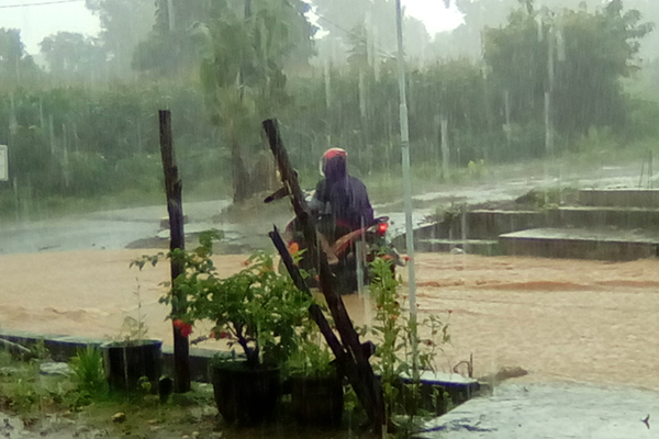 Genangan air paling parah terjadi di ruas Jalan WJ Lalamentik, Kelurahan Oebufu. Di lokasi itu ketinggian genangan air di badan jalan mencapai lutut orang dewasa.