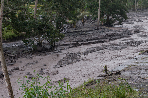 Pasca banjir kondisi masih menyisakan banyak lumpur dan kerikil sehingga pengguna jalan harus ekstra hati-hati.