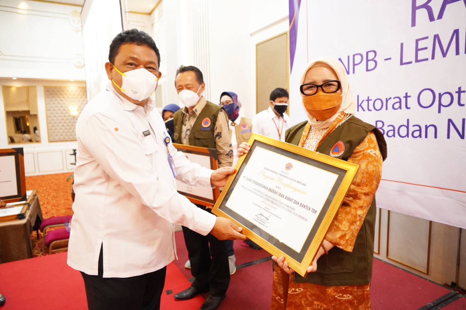 Penghargaan ini diserahkan Deputi Bidang Logistik dan Peralatan BNPB Prasinta Dewi kepada Direktur Konsumer & Ritel bank bjb Suartini