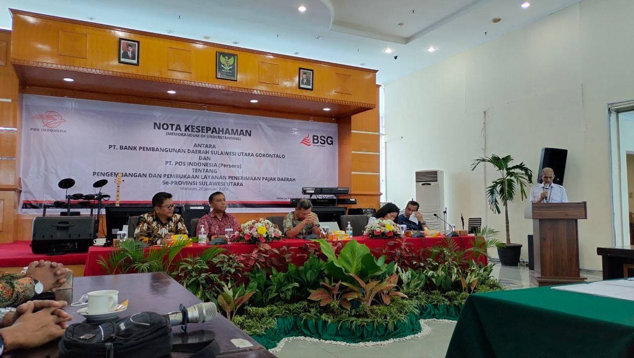PT Pos Indonesia (Persero) menjalin kerja sama dengan PT Bank Pembangunan Daerah Sulawesi Utara dan Gorontalo (BSG) untuk meningkatkan penerimaan pajak daerah dan biller.