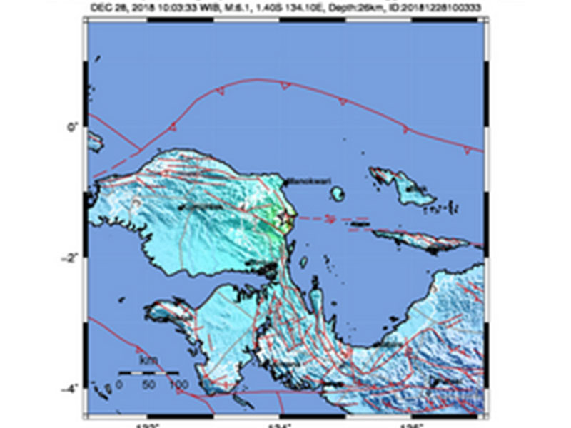 PVMBG menyatakan gempa bumi terjadi pada hari Jumat (28/12), pukul 10:03:33 WIB. Menurut Badan Meteorologi dan Geofisika (BMKG), pusat gempa bumi berada pada koordinat 1,40°LS dan 134,10°BT dengan magnitudo 6,1 pada kedalaman 26 km, berjarak 55 km tenggara Manokwari Selatan, Papua Barat.