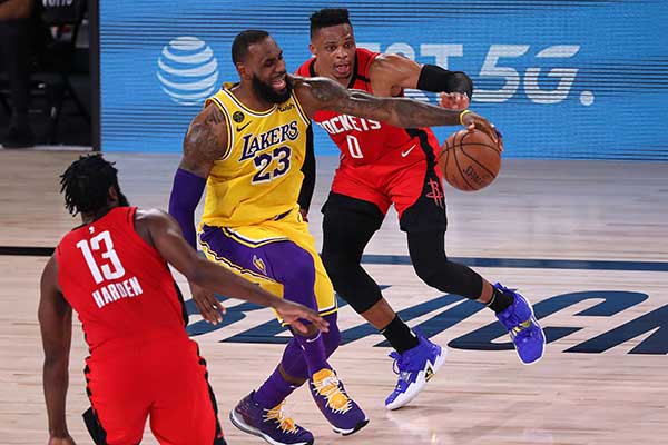 LOS Angeles Lakers mengalahkan Houston Rockets dengan skor 110-100 di gim keempat semifinal Wilayah Barat NBA, kemarin WIB.