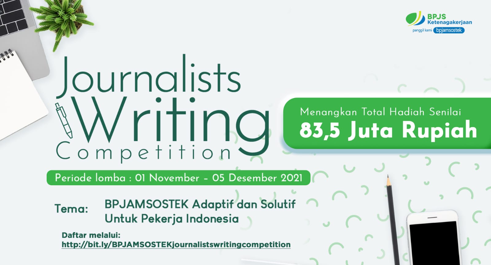 Peserta wajib mendaftar dan mengirimkan artikel yang telah dipublikasikan di media masing-masing selama periode 1 Januari-5 Desember 2021