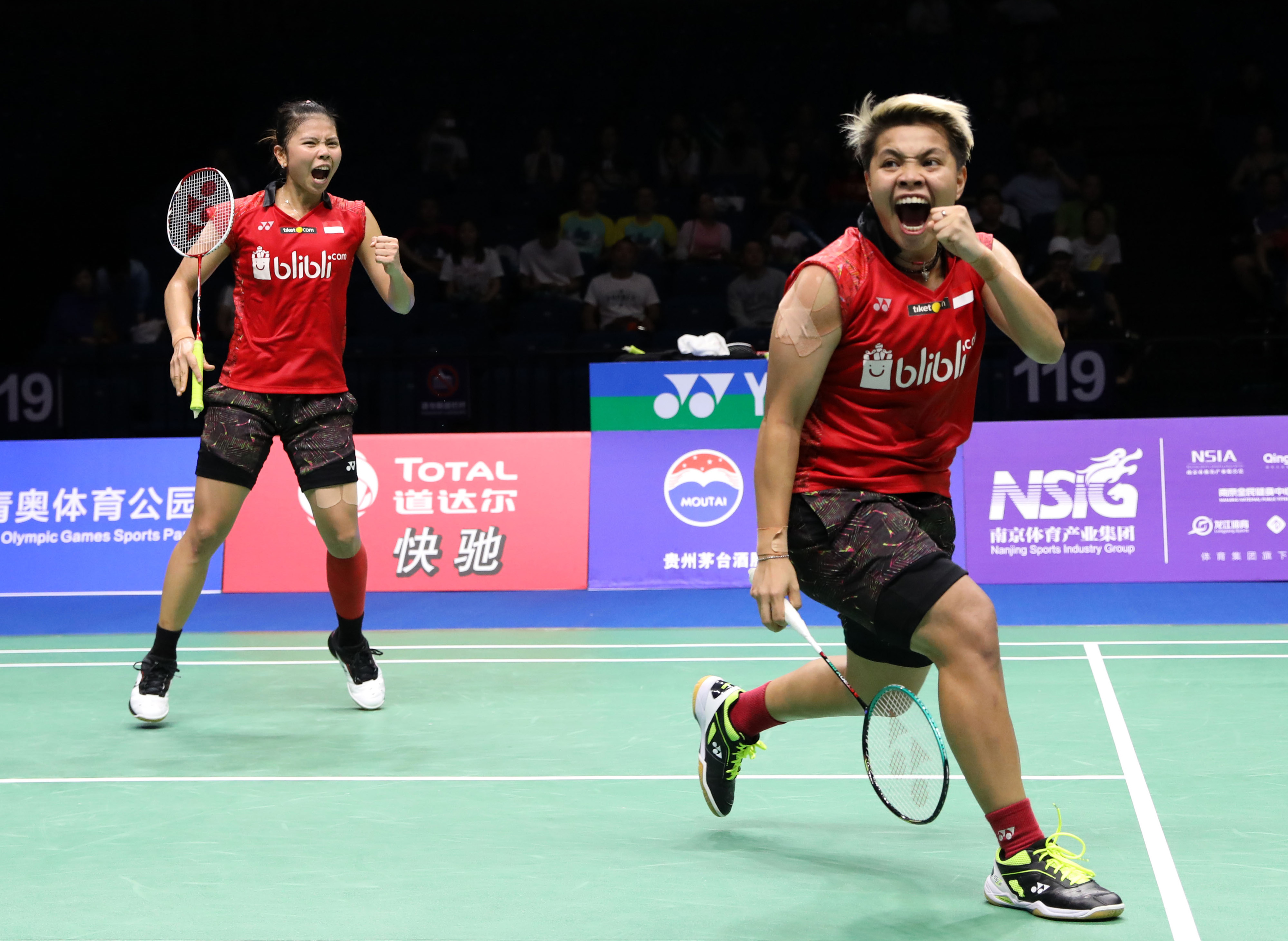 Kekalahan pertama dialami oleh Rinov/Mentari. Mereka kalah dari Takuro Hoki/Wakana Nagahara (Jepang) dengan skor 9-21, 21-19 dan 17-21