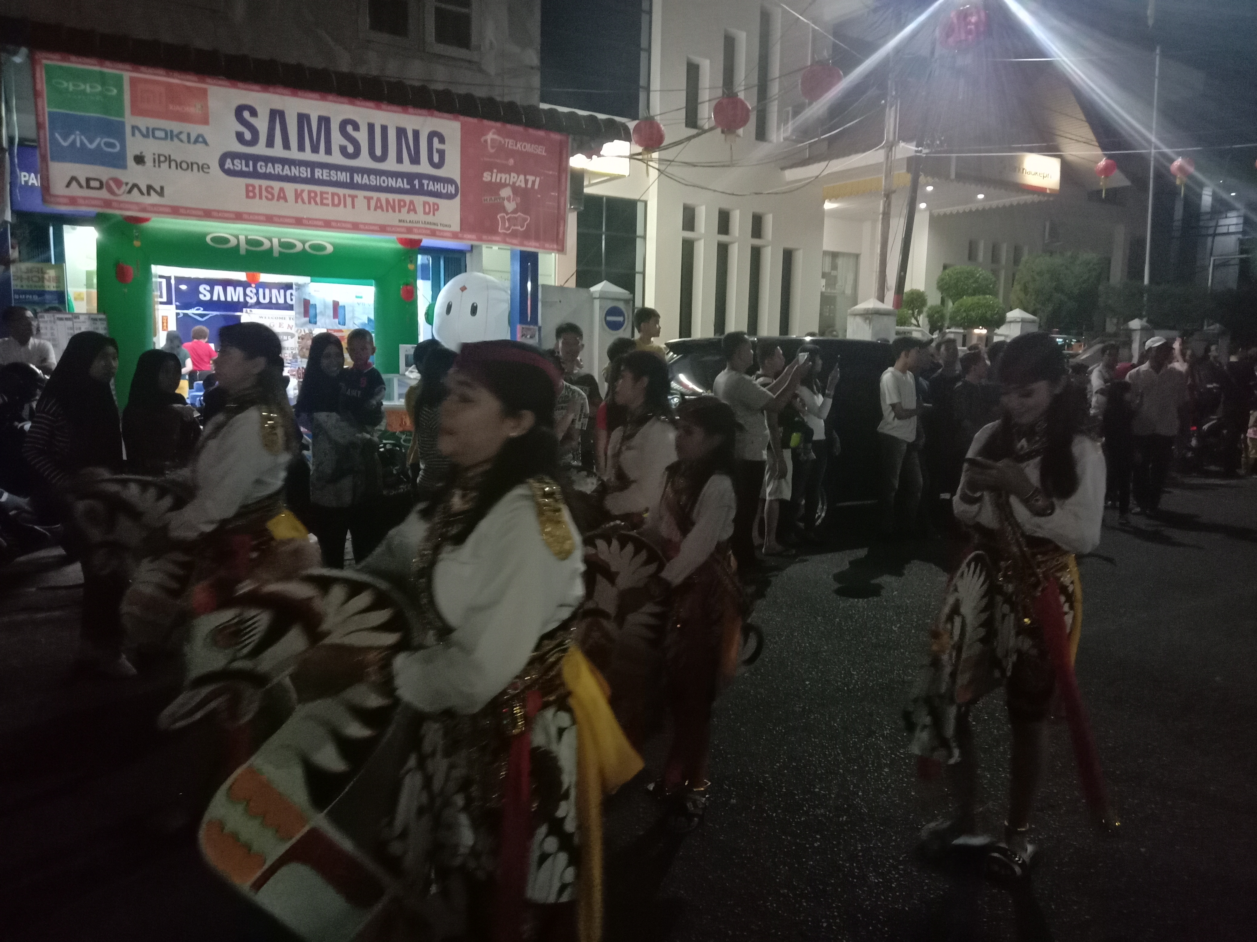 Pentas barongsai dan liong dipertontonkan kelompok seni dari Salatiga. Pertunjukan digelar mulai sekitar pukul 20.30 WIB di halaman klenteng.