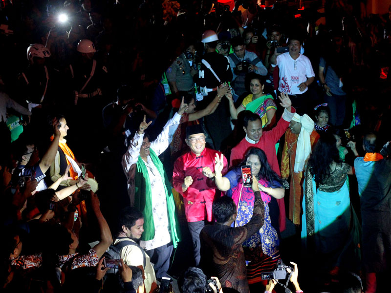 Perayaan Cap Go Meh diwarnai semarak budaya nusantara lewat kehadiran berbagai penampilan budaya yang dibawakan beragam komunitas etnis yang ada di Kota Gurindam itu.