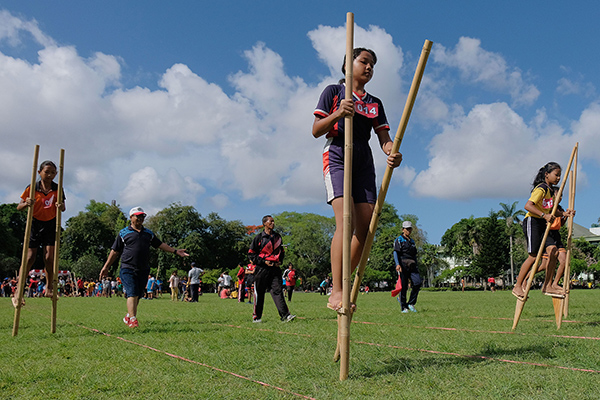 Pertunjukan Egrang di tengah perayaan Cap Go Meh juga menjadi pusat perhatian pengunjung. Bahkan sebelum barongsai unjuk kebolehannya, para pengunjung tertarik menonton aksi joget ria Egrang.