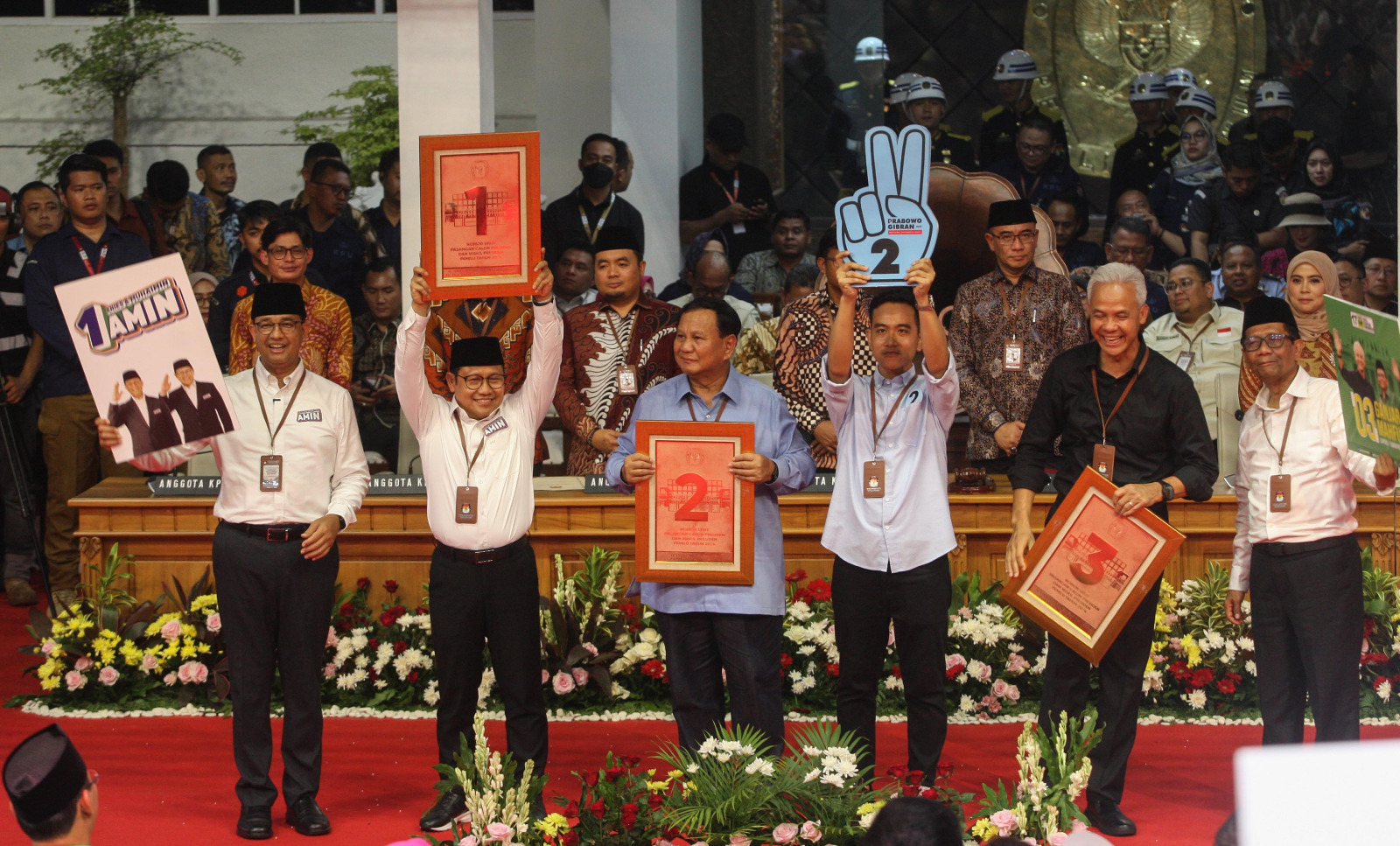 Hasilnya, secara berurutan paslon Anies-Imin mendapatkan nomor urut 1, paslon Prabowo-Gibran nomor urut 2 dan paslon Ganjar-Mahfud mendapatkan nomor urut 3.