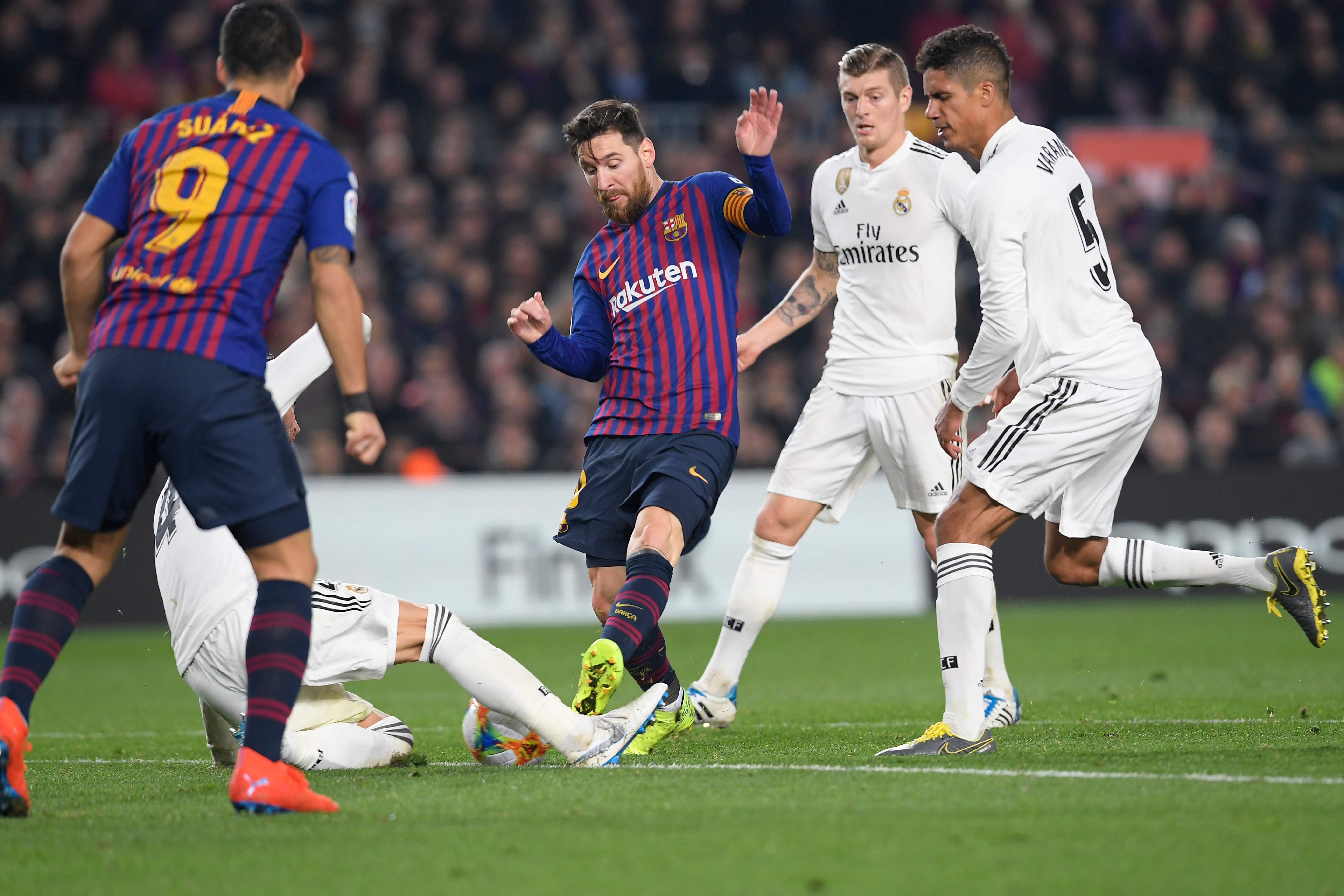 Skuat asuhan Santiago Solari itu dalam situasi menguntungkan karena bintang Barcelona Lionel Messi tidak bermain sejak menit awal.