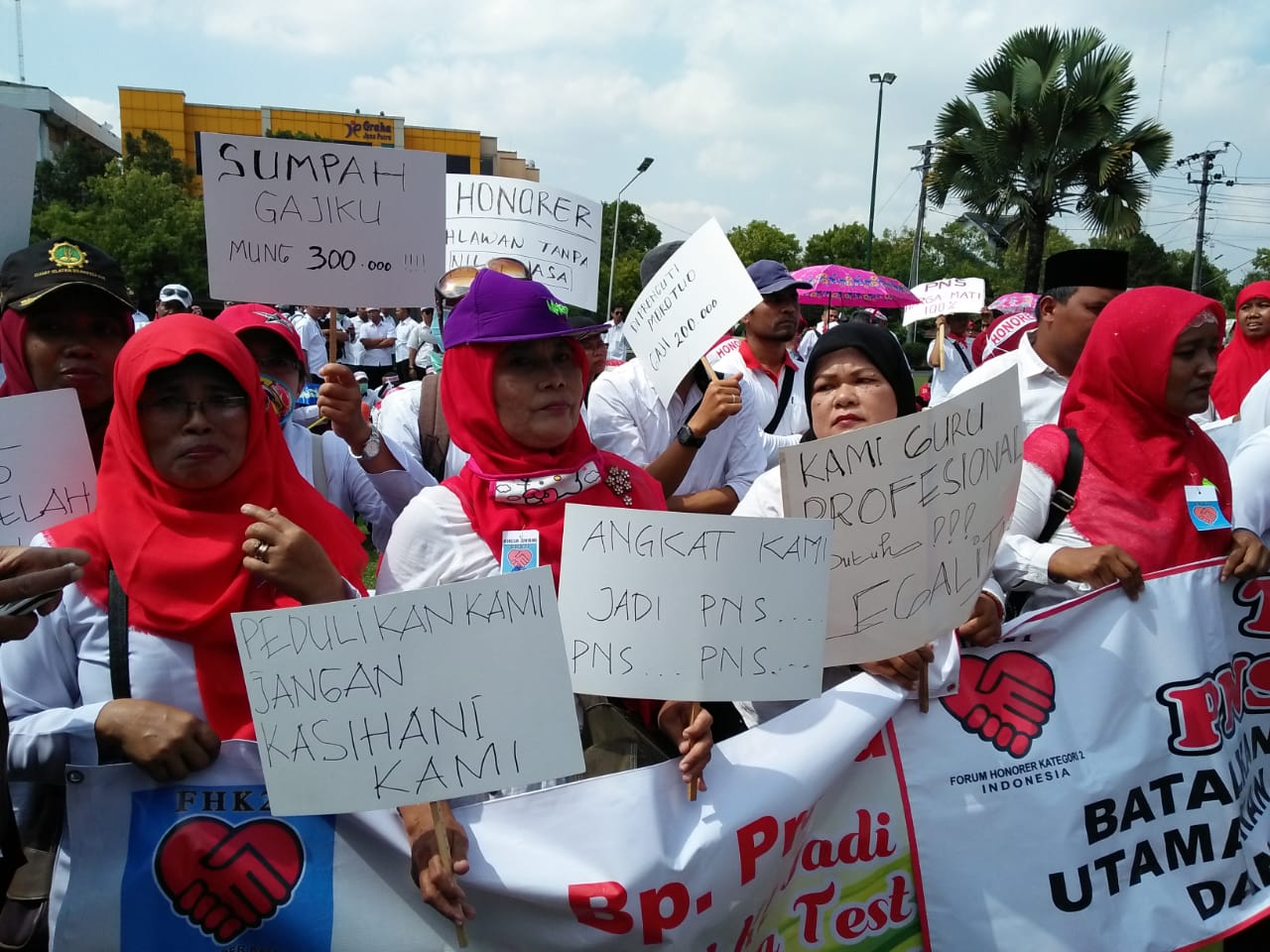 Ketua Forum Komunikasi Honorer Guru dan Tenaga Kependidikan Gelora Samudera Kecamatan Palabuhanratu, Ichsan Hakim, mengatakan aksi itu merupakan tindak lanjut aksi serupa di Stadion Korpri, Cisaat, Rabu (19/9). Hasil kesepakatan, mereka akan melakukan aksi mogok hingga 25 September.