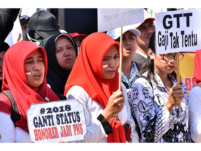 Mereka menuntut pemerintah dalam hal ini Kementerian Pendayagunaan Aparatur Negera dan Reformasi Birokrasi memerhatikan guru honorer K2 maupun non-K2. Di Kecamatan Pacet guru honorer K2 tercatat sebanyak 52 orang dan sisanya 142 orang merupakan guru honorer non-K2.