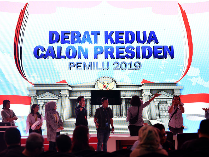 H-1 jelang debat kedua, tata letak panggung dan ratusan kursi sudah disiapkan oleh pihak panitia. Nuansa merah dan putih mendominasi dekorasi ruangan Golden Ballroom. Panitia dan pihak televisi penyelenggara sedang melakukan gladi kotor dalam ruangan debat.