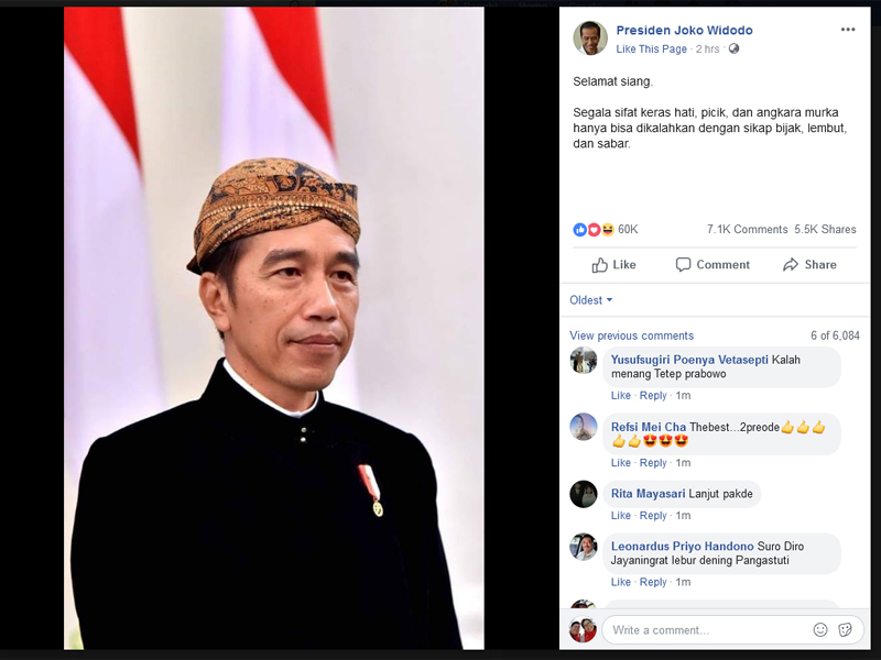 "Selamat siang. Segala sifat keras hati, picik, dan angkara murka hanya bisa dikalahkan dengan sikap bijak, lembut, dan sabar."