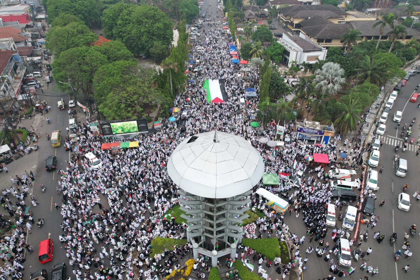Wali Kota Cilegon Helldy Agustian mengapresiasi panitia yang menggelar acara tersebut dan memuji ribuan warga yang telah hadir sejak subuh demi mengikuti aksi solidaritas untuk Palestina.