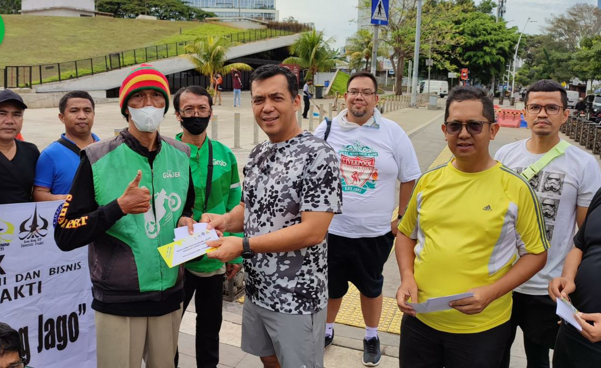 Sebanyak 100 voucher bensin gratis sebagai bentuk kepedulian dari alumni FEB Trisakti, dibagikan kepada pengemudi ojol