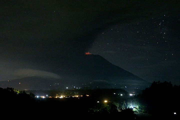 ERUPSI Gunung Agung terus meningkat. Tingkat erupsi Gunungapi Agung sekarang meningkat dari fase freatik ke magmatik sejak teramati sinar api di puncak di malam hari pada Sabtu (25/11) pukul 21.00 Wita.