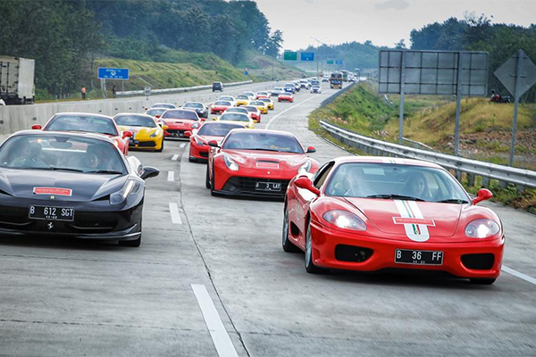 Peserta Ferrari Trans Java Tour 2019 memiliki kesenangan tersendiri karena melintasi jalan tol yang penuh dengan bentang alam indah