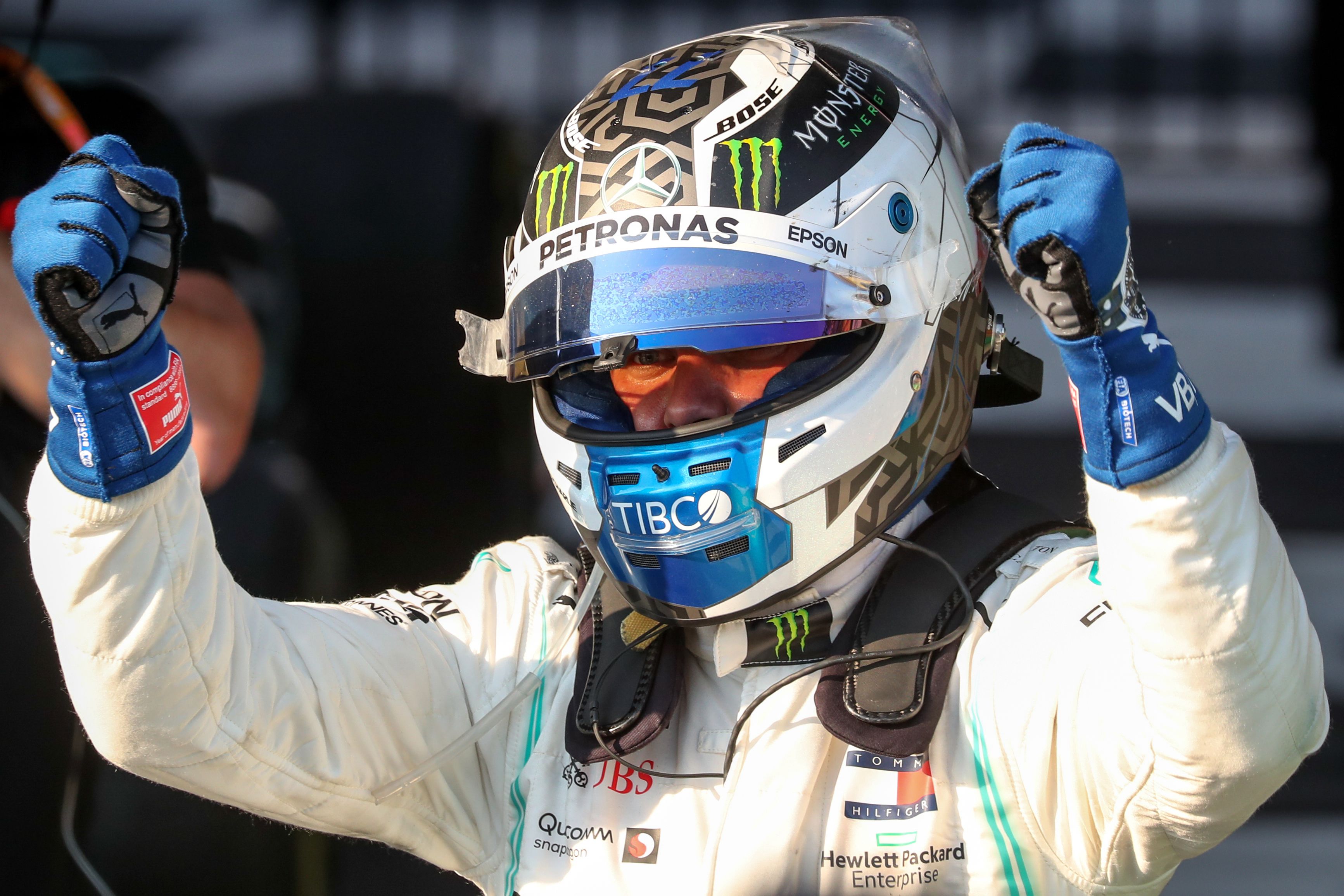 Lewis Hamilton harus puas dengan finis di urutan kedua.