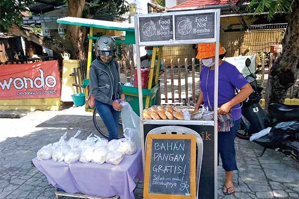 SOLIDARITAS masyarakat menjadi salah satu kunci untuk di tengah pandemi covid-19, mulai saling bantu menyediakan makanan