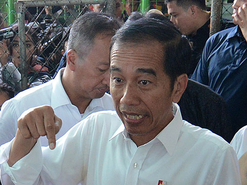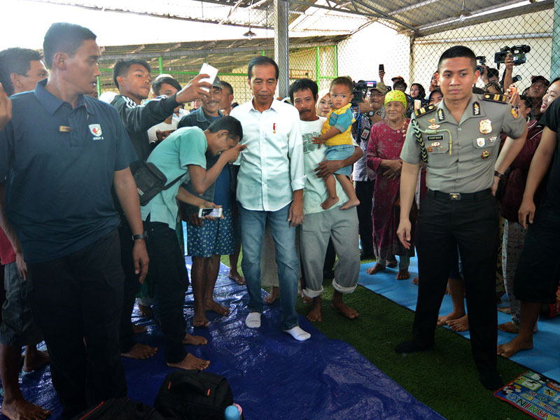 Pantauan Media Indonesia, Jokowi yang khas mengenakan kemeja putih langsung berbaur bersama ribuan pengungsi yang sudah menunggu di areal lapangan futsal kecamatan.