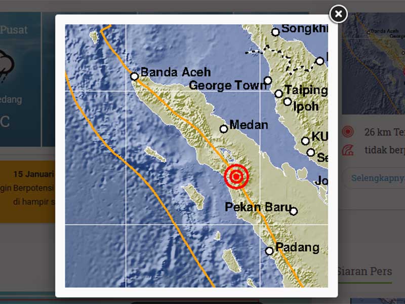 BMKG mencatat, gempa bumi 5,7 SR mengguncang Kota Sabang tepatnya pada pukul 09.53 WIB dan pusatnya 202 Km Barat Laut Kota Sabang, Provinsi Aceh.