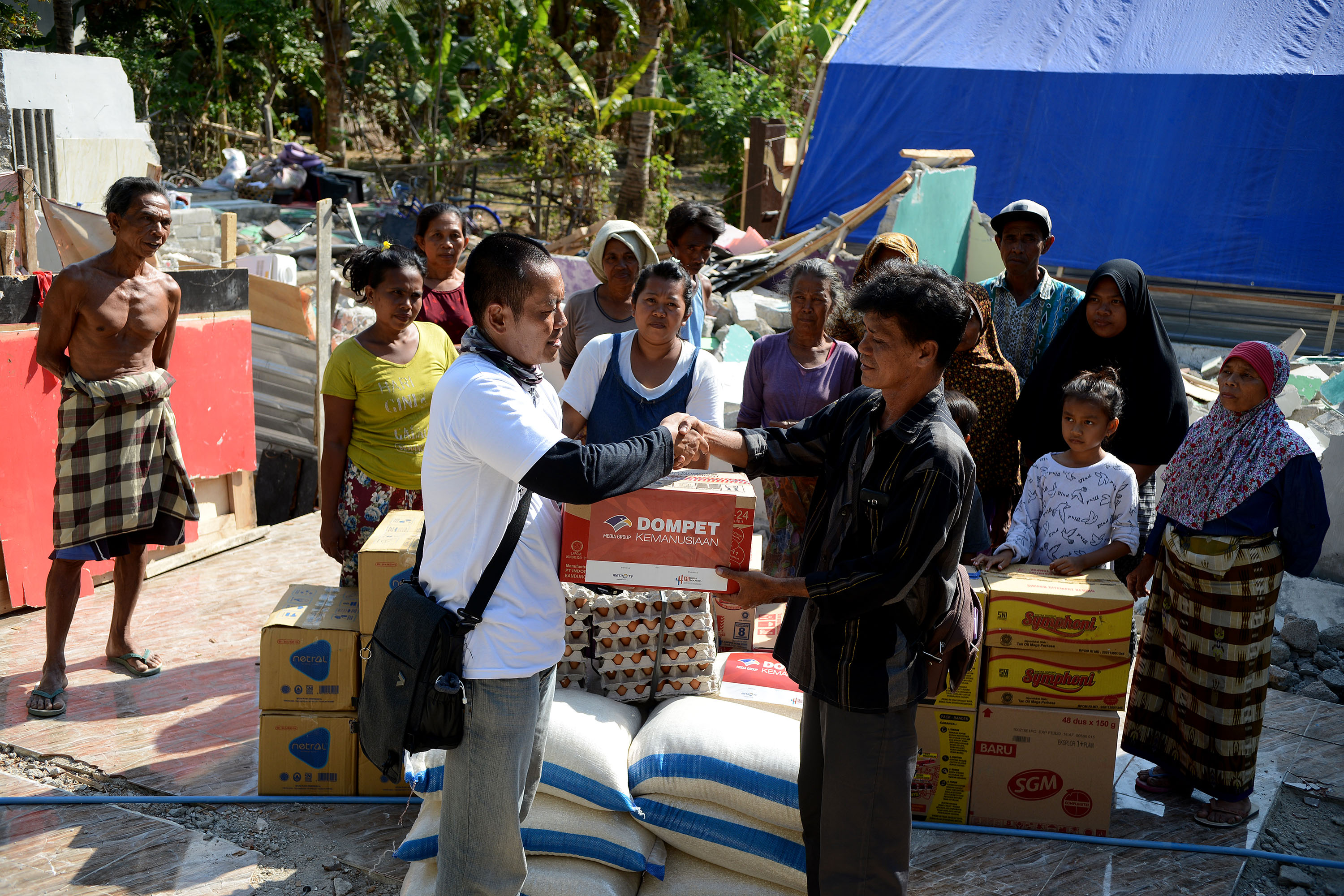 Sejumlah titik lokasi bantuan yang diturunkan antara lain, di Desa Kekait, Kecamatan Gunungsari, Kabupaten Lombok Barat yang diterima langsung oleh Kades Kekait HM Zaini.