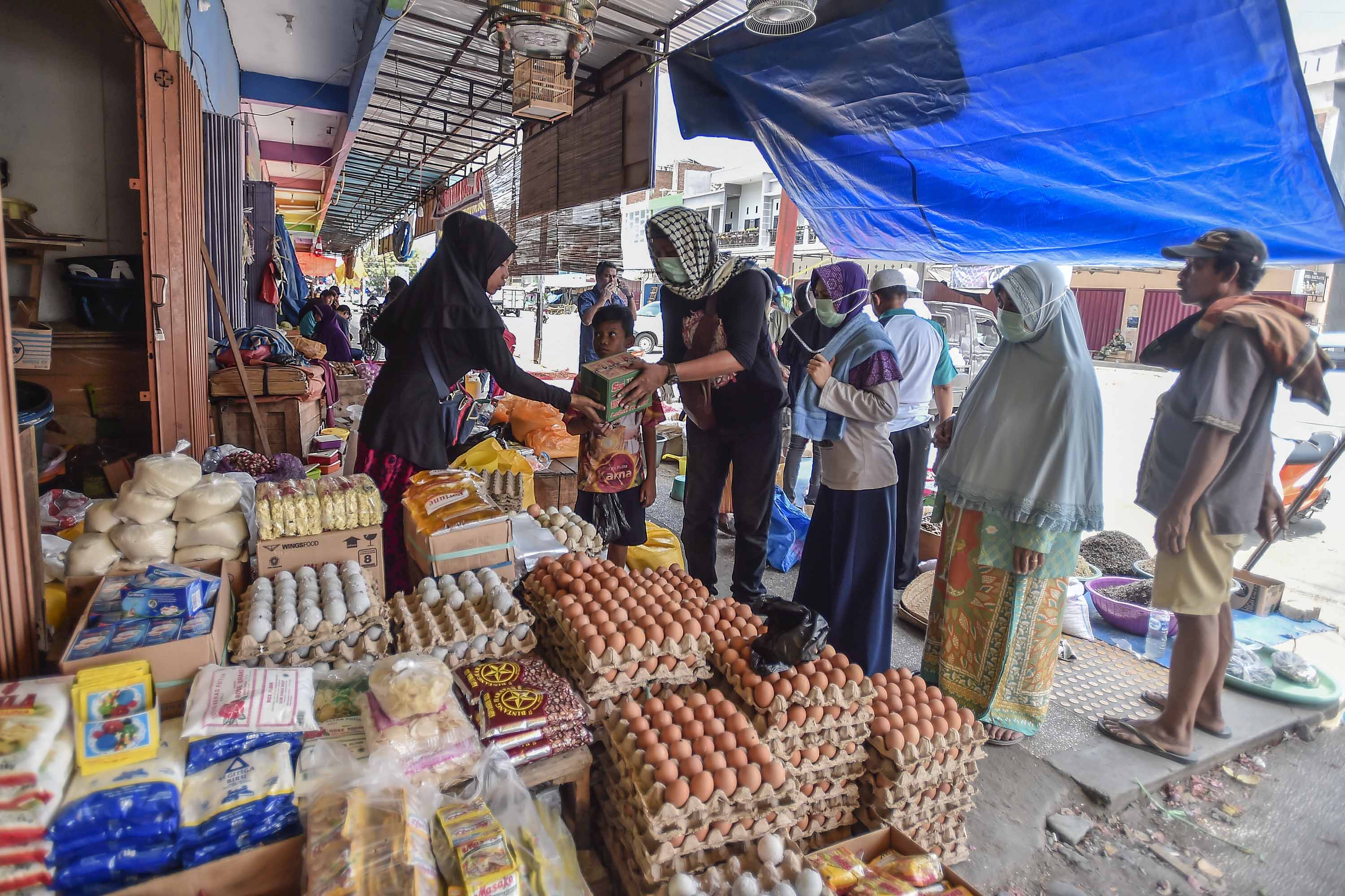 Meski tidak seramai pada hari biasa sebelum gempa, warga sudah mulai melakukan transaksi jual beli.