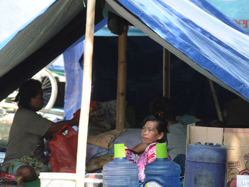 Warga belum dapat melakukan rutinitas seperti biasa sebelum gempa disertai lumpur. Warga masih berada di tenda-tenda pengungsian, di bawah pohon kakao tanpa banyak aktivitas.