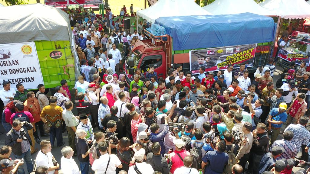 Ada sebanyak 500 truk bantuan berupa bahan pangan dan bantuan dana sebesar Rp25 miliar yang akan disalurkan ke wilayah gempa di Sulawesi Tengah.