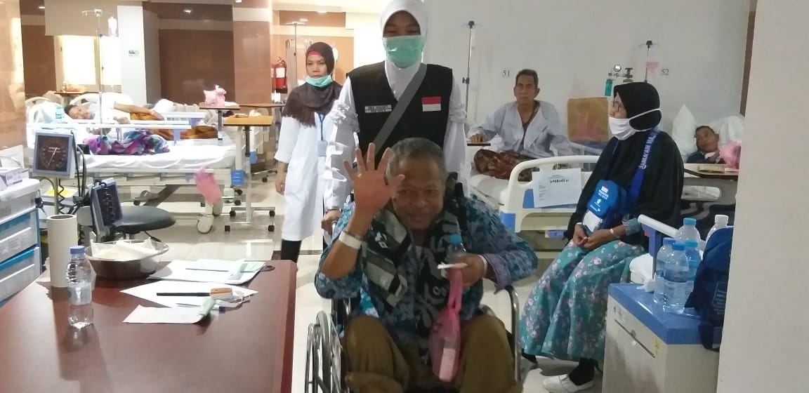 RUANGAN demi ruangan perawatan di Klinik Kesehatan Haji Indonesia (KKHI) di kawasan Aziziziyah Janubiyah, Mekah, Arab Saudi, Rabu (12/9), disisir. Setiap menemui jemaah haji yang tengah dirawat disapa, diberikan motivasi dan didoakan agar lekas sembuh.