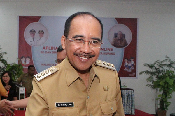 Seremoni pelepasan calon jemaah haji dilakukan Wali Kota Kupang Jefri Riwu Kore bersama tokoh agama, tokoh masyarakat, dan pimpinan organisasi perangkat daerah.