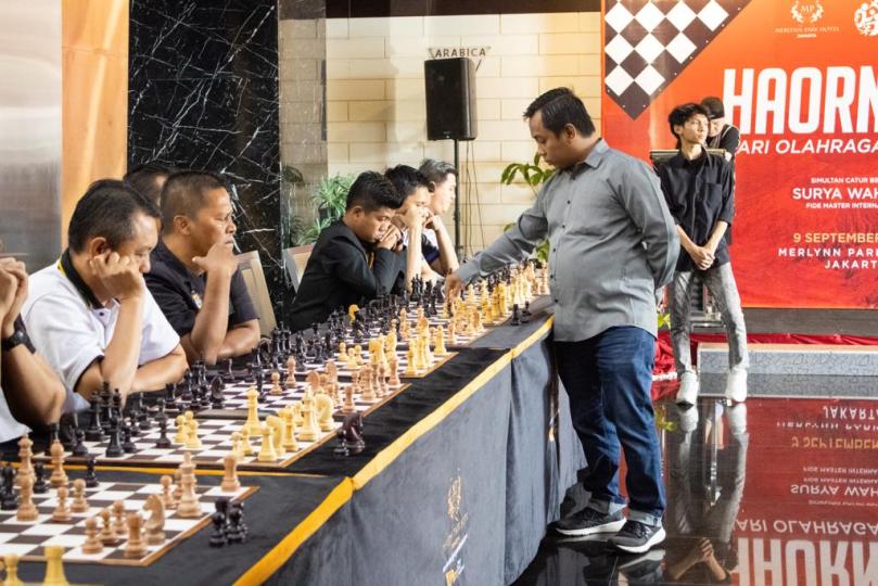 Merlynn Park Hotel Jakarta dengan bangga menggelar acara Simultan Catur yang melibatkan 30 pemain catur pilihan melawan seorang FIDE Master International, Surya Wahyudi.