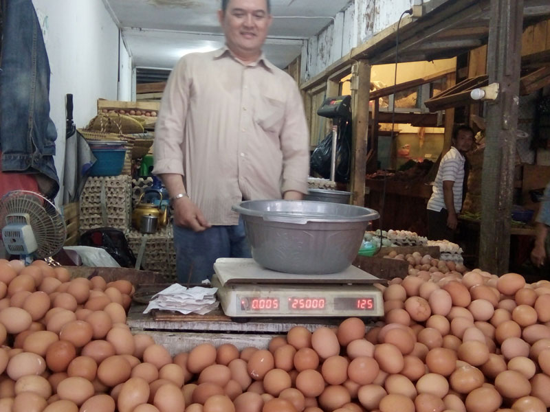 Harga telur, minyak goreng, ayam potong, bawang merah, cabai rawit, seluruhnya rendah, stabil, cenderung turun.