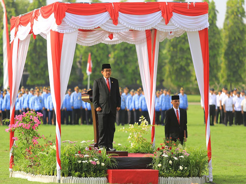 Dalam upacara tersebut, inspektur upacara membacakan sambutan Menteri Sosial Agus Gumiwang Kartasasmita.