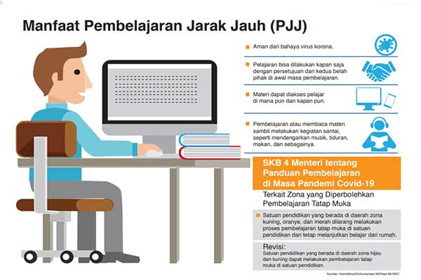PROTOKOL kesehatan di masa pandemi covid-19 mengharuskan sekolah meninggalkan kegiatan belajar mengajar secara normal.