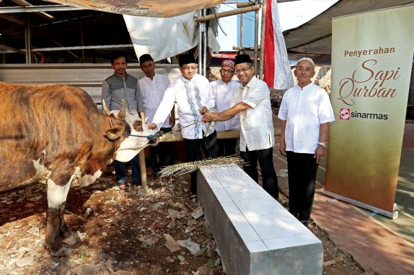 Menyerahkan hewan kurban menjadi salah satu aksi nyata untuk mengisi Idul Adha yang dilakukan pihak Sinar Mas