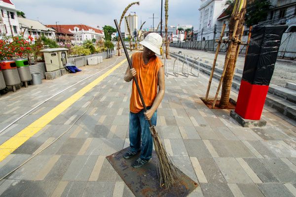Petugas kebersihan Dinas Lingkungan Hidup alias pasukan oranye tetap bertugas selama Hari Raya Idul Fitri. Pasalnya, tidak boleh ada kekosongan petugas kebersihan selama Lebaran, khususnya di wilayah Ring 1, Jakarta Pusat.