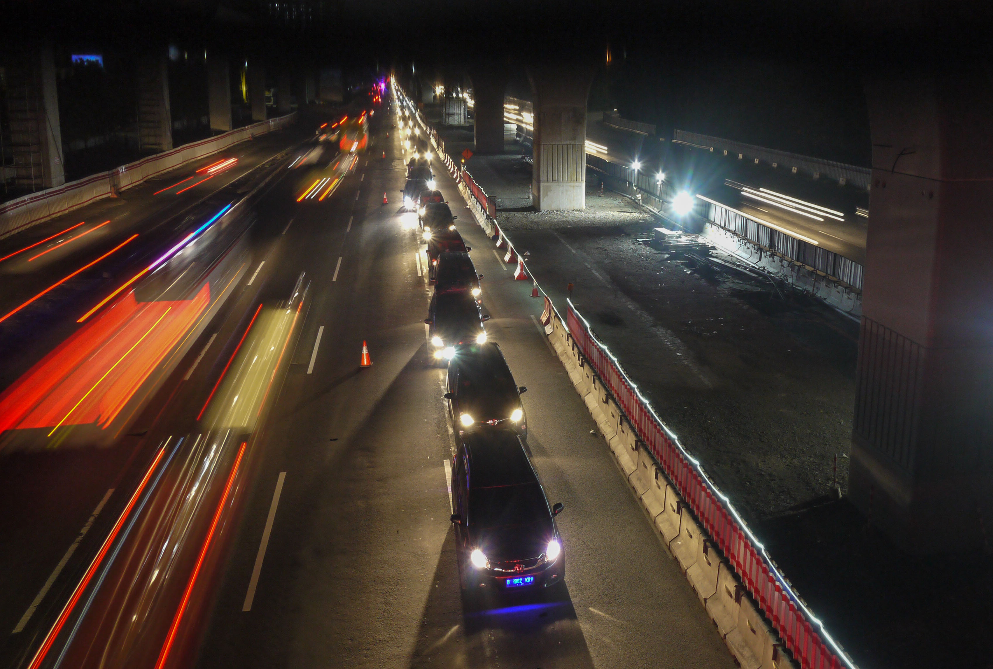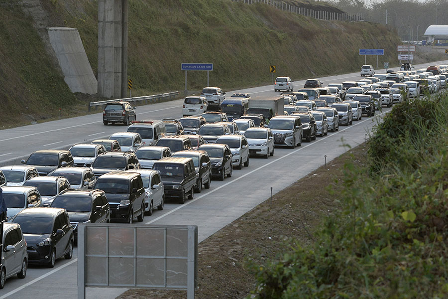 Puncak arus balik Lebaran 2018 ditandai dengan serbuan pemudik bersepeda motor di jalan arteri arah Jakarta di jalan arteri Cikampek arah Jakarta tadi malam.