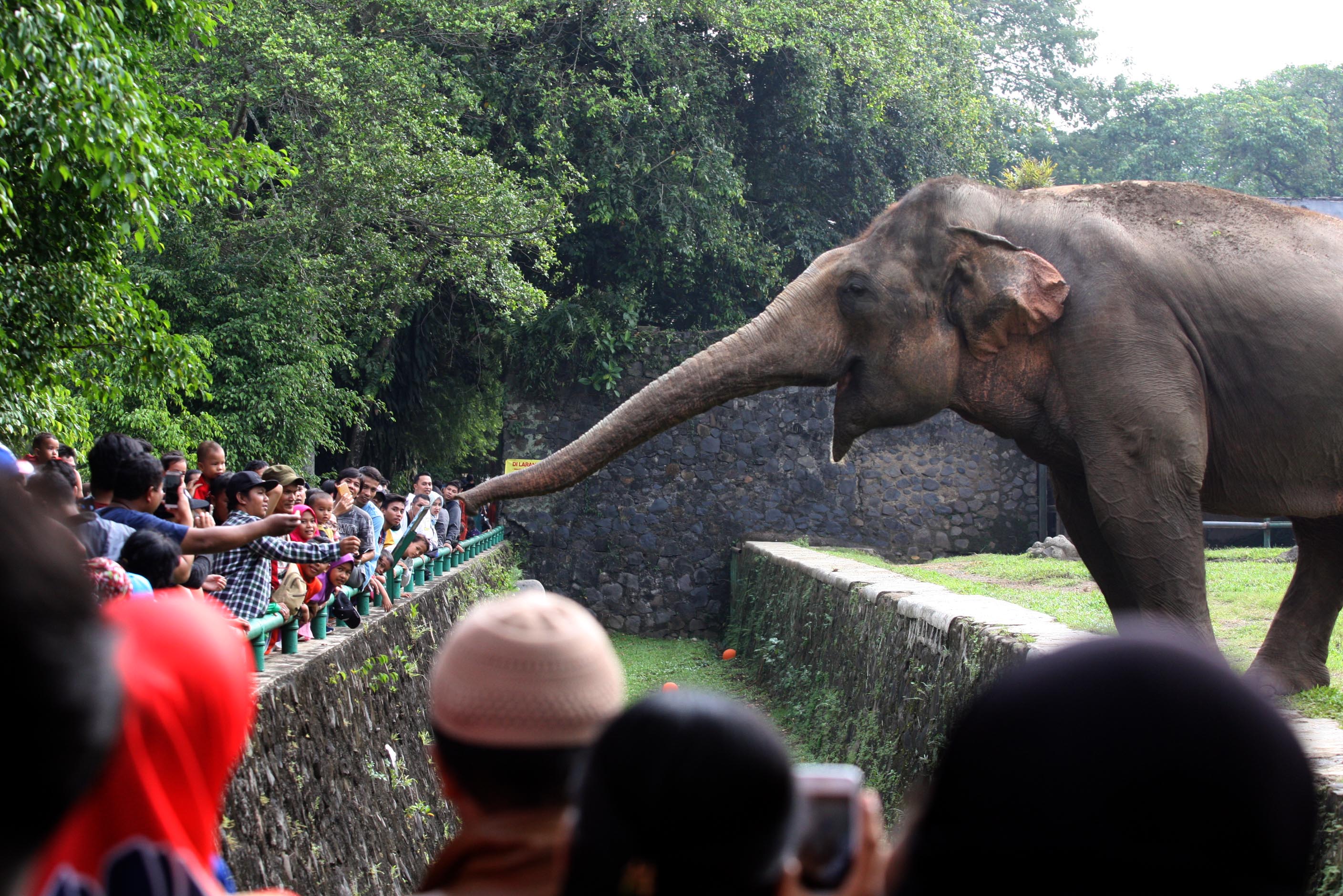 Tahun ini, feeding time sedikit berbeda, sebab, pengelola memberikan ketupat. Tapi, bukan ketupat yang biasa diisi beras. Khusus untuk satwa, ketupat diisi dengan pakan satwa.