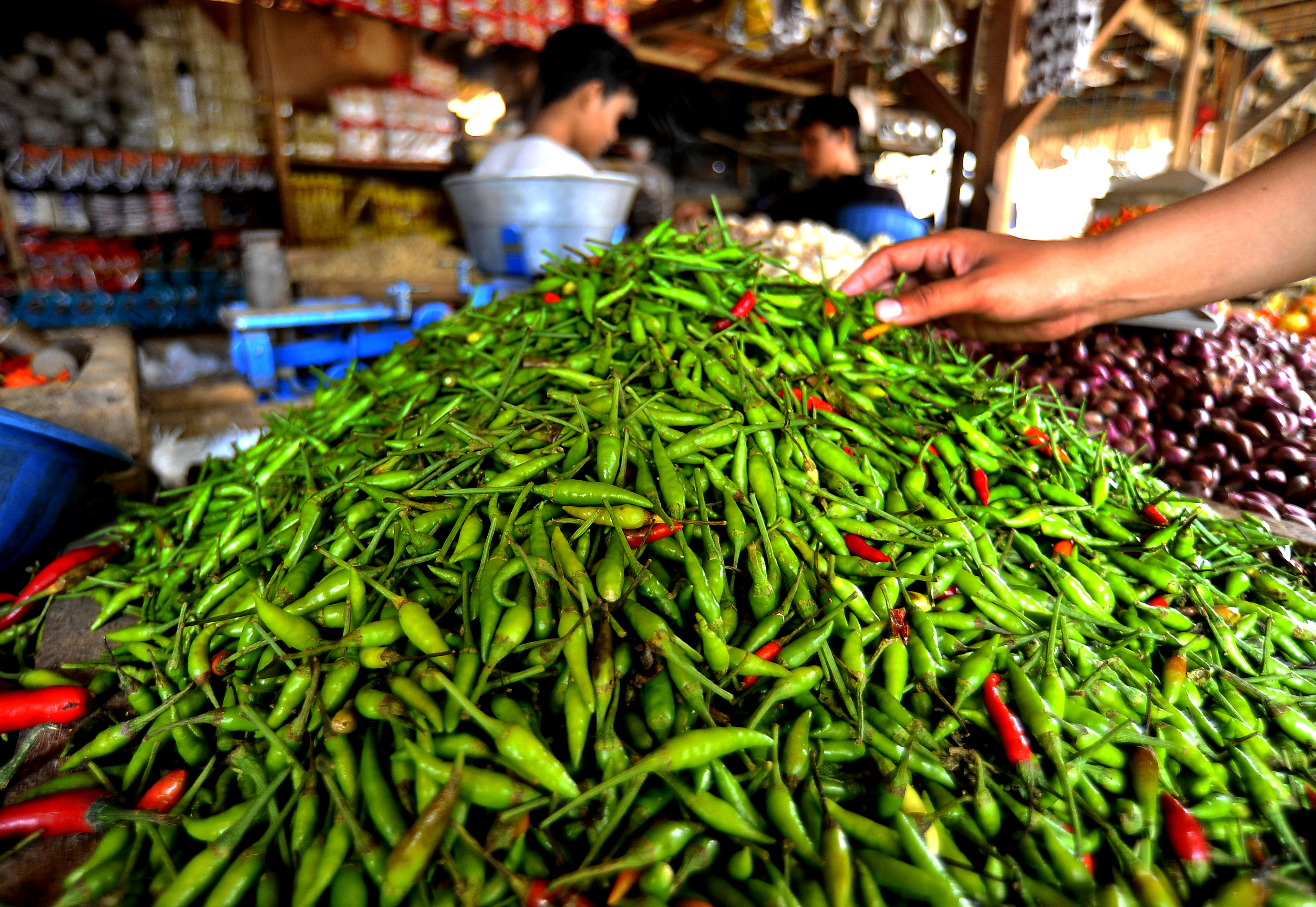 Tidak hanya cabai rawit, harga cabai keriting dan cabai besar juga turun drastis. Harga cabai kerinting Rp8.000 dan cabai besar Rp11.000 per kilogram.