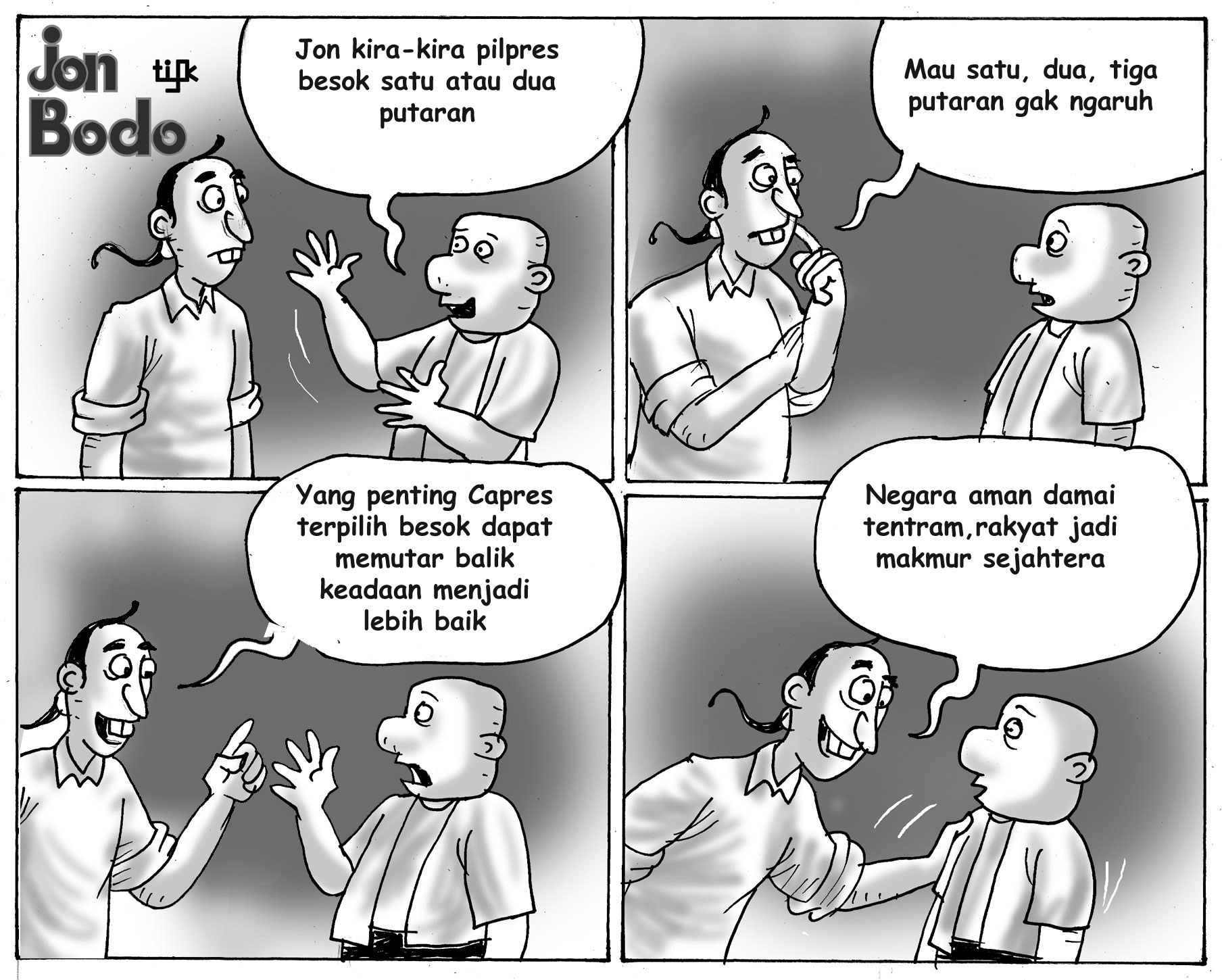 JON aku sudah punya pilihan Presiden dan Wakil Presiden di pemilu besok, soalnya program kerjanya menyejahterakan rakyat...
