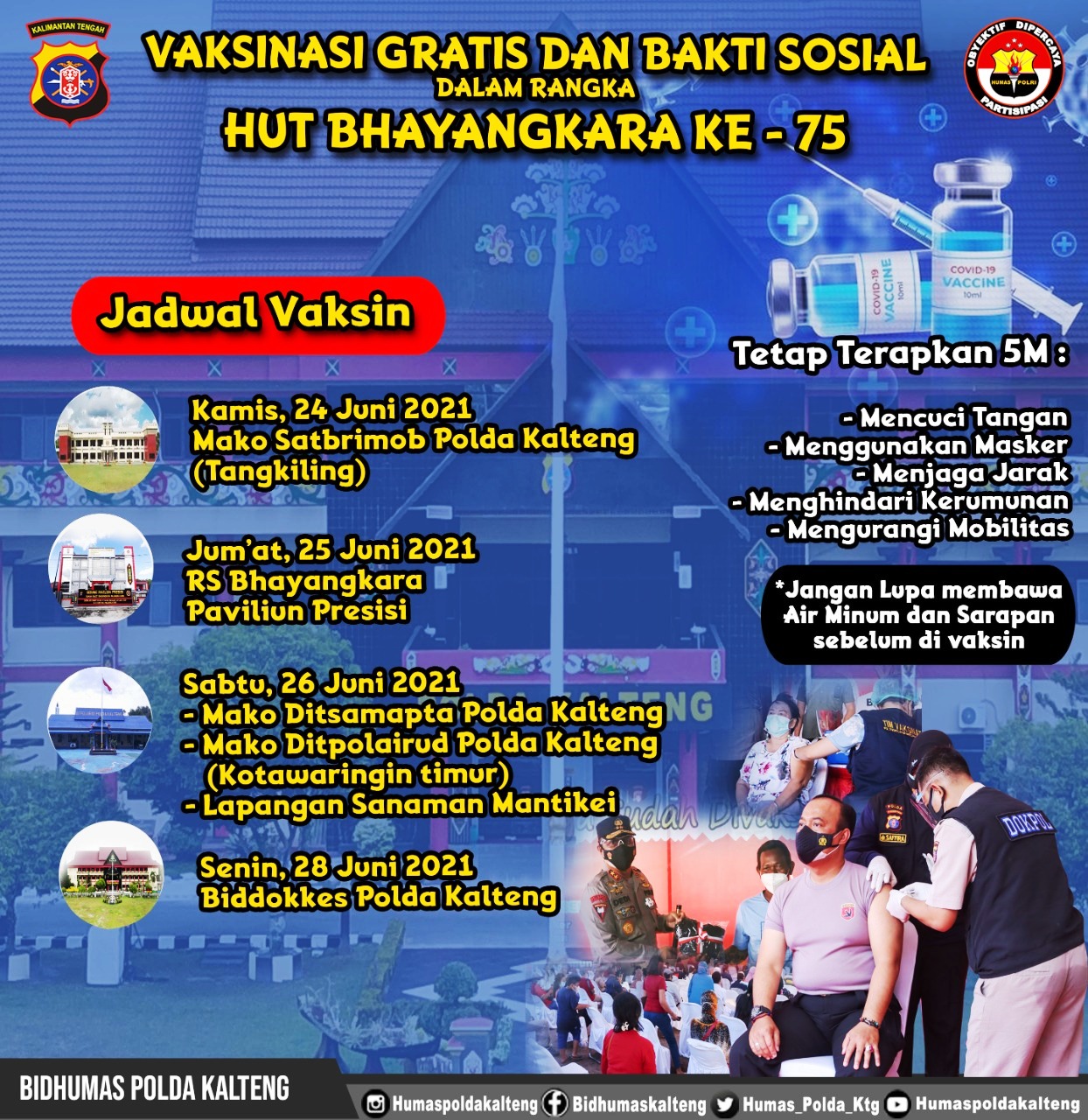 Pelaksanaan vaksinasi massal oleh Polda Kalteng, merupakan bagian upaya dalam memutus mata rantai penyebaran covid 19 di Kalteng