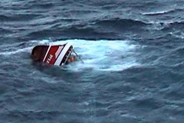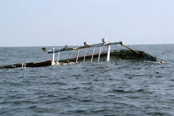 Kapal Nelayan Sinar Laut terbalik di Perairan Utara wilayah Karawang, tepatnya di wilayah Tirtajaya, saat sedang posisi lego jangkar untuk memancing ikan cumi.