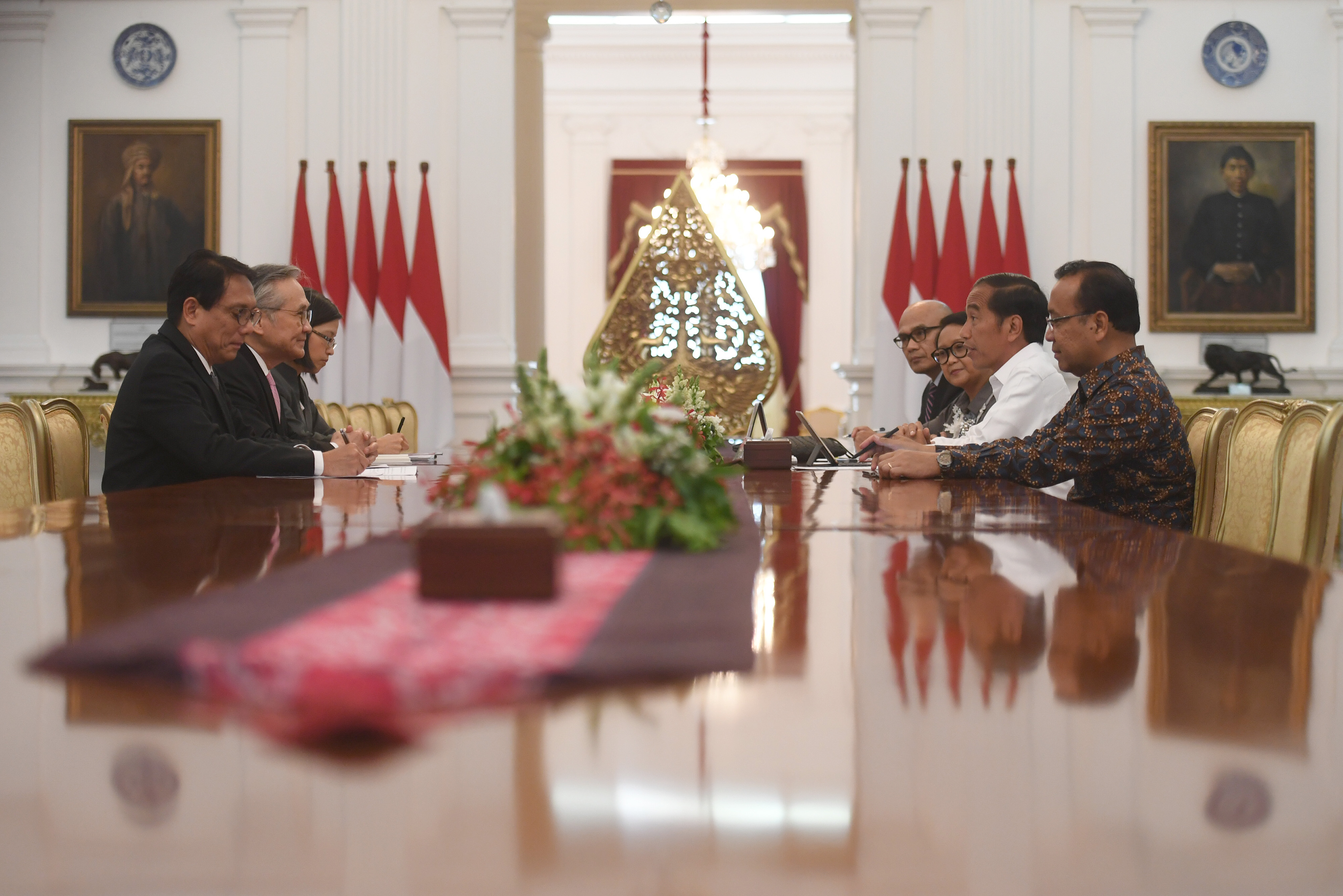 Presiden Joko Widodo (Jokowi) menerima kunjungan Menteri Luar Negeri Thailand Don Pramudwinai di Istana Merdeka, Rabu (13/3). Dalam pertemuan itu dibahas sejumlah isu antar kedua negara dan isu regional Asean.