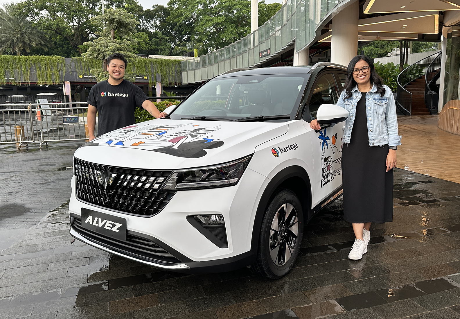 Lukisan yang terinspirasi dari mobil Wuling Alvez ini merupakan sebuah karya seni yang menggambarkan kehidupan modern dan dinamis di masa kini.
