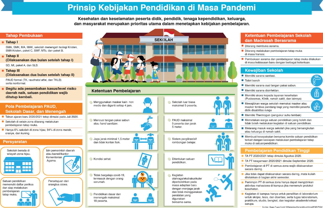 Panduan yang disusun dari hasil kerja sama dan sinergi antarkementerian ini bertujuan mempersiapkan satuan pendidikan saat menjalani masa kebiasaan baru.
