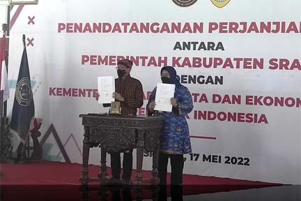 Kesepakatan hibah antara Bupati Sragen Kusdinar Untung Yuni Sukowati dengan Menparekraf Sandiaga Uno itu dilakukan di Pendopo Rumah Dinas Bupati Sragen.