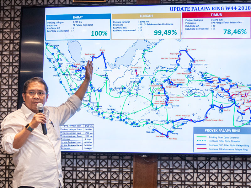 Pemerintah menargetkan penyelesaian pembangunan jaringan telekomunikasi Palapa Ring Timur sebelum peringatan Proklamasi 17 Agustus 2019.